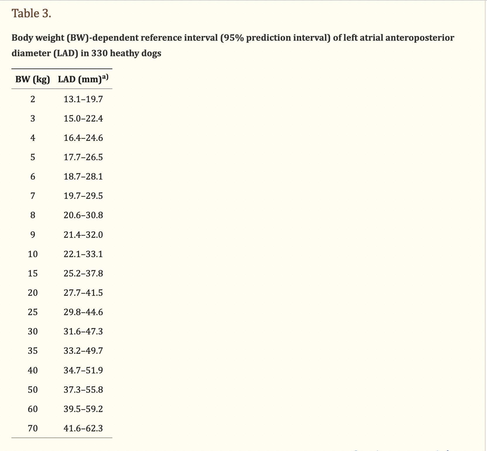 Notice there is significant range of normal so an upper end of normal may be big on one breed and not in another…. hence going to the AS deviation concept really helps. In addition, usually when clinical for B2/B2+ then at least 2 if not all 3 LA measurements are excessive which is why all our SDEP protocol and mobile techs/drs always measure all 3 la/ao heart base, june boon and la max. But we sink our teeth into la max most of the time when reading telemed and how we address the case but all 3 are there for any flavor of specialist or gp evaluating.