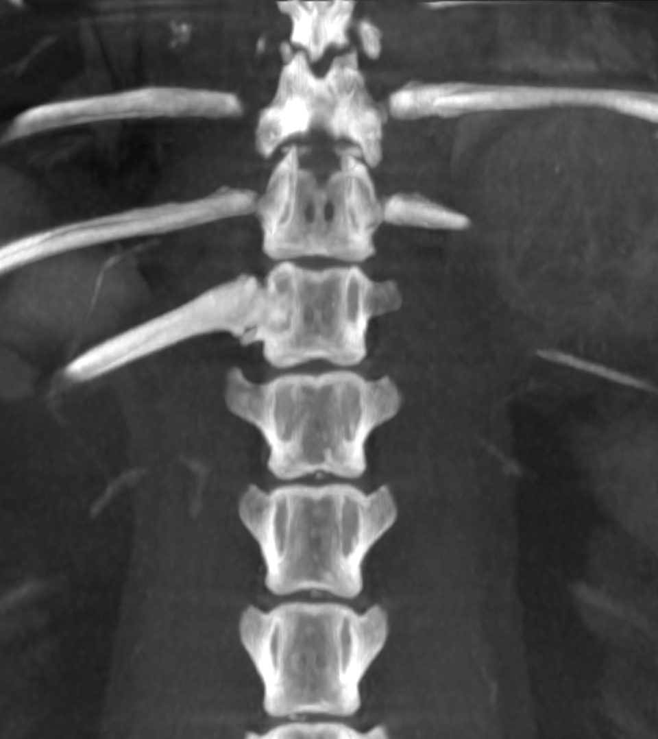 There is an asymmetric thoracolumbar transitional vertebra, which is an incidental