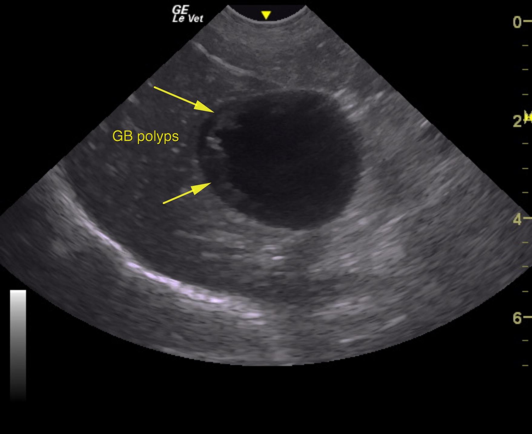 The gallbladder presented minor polypoid changes and minor over distension. The gallbladder revealed a double layered wall.