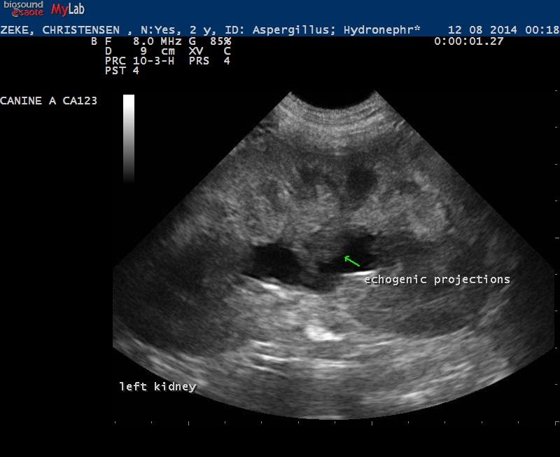 A 2-year-old MN German Shepherd was presented for anorexia, lethargy, exhibiting acute renal failure and the following labs: Azotemia (BUN >130; Creat 9.9), USG=1.012, Hyperblilrubinemia, and Leukocytosis (52,000).